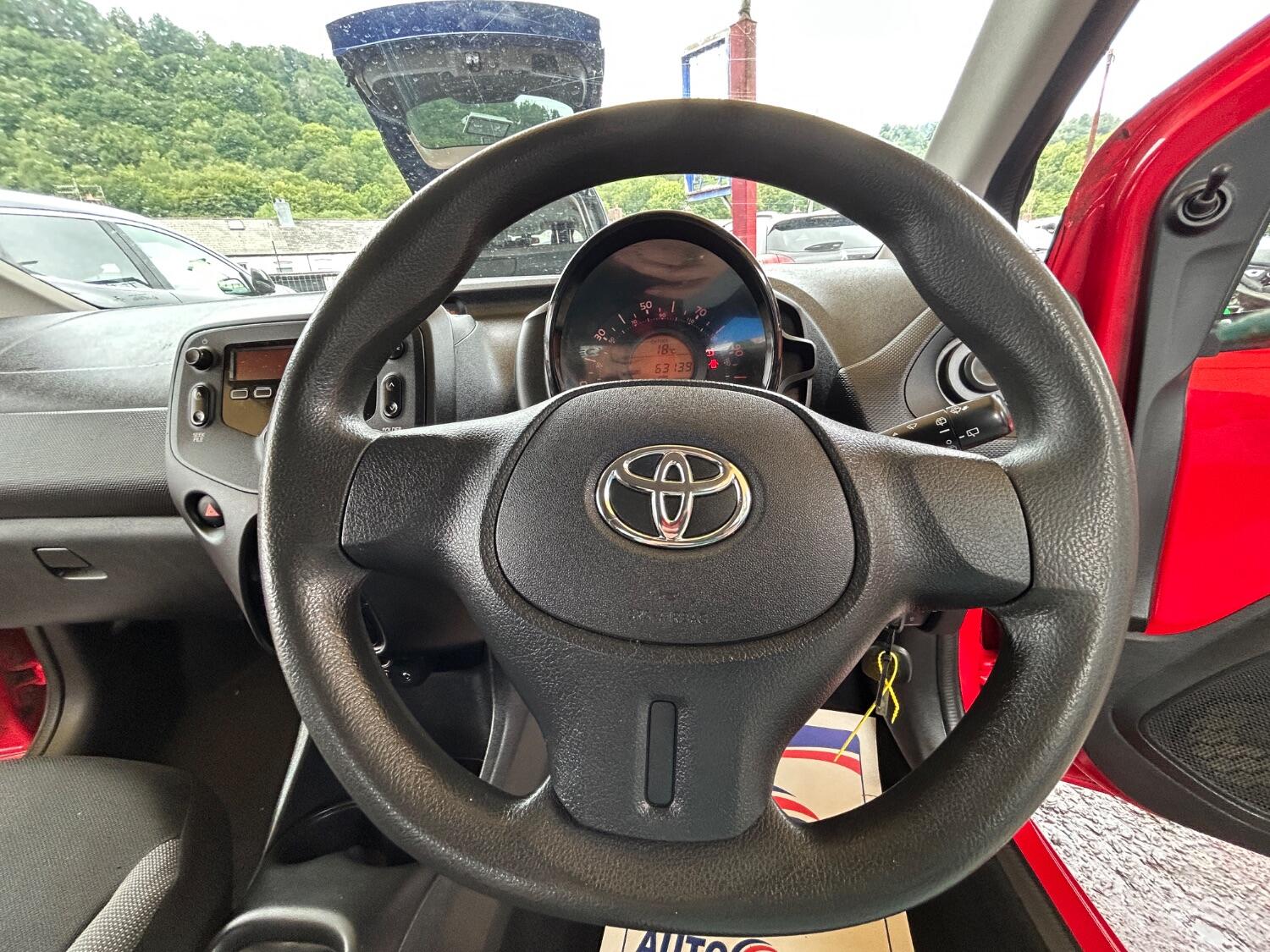 The Toyota Aygo is finished in a bold red colour that is sure to stand out on the road. Its small size makes it easy to park and manoeuvre in tight spaces, reducing the risk of accidents and making it an excellent choice for new drivers.